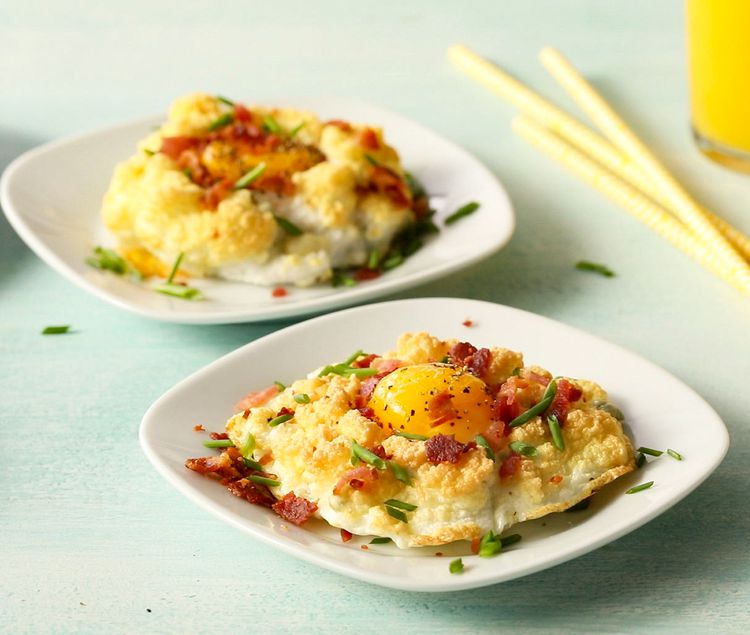 Whipped egg whites create the "nest" that holds the yolk for this sunny breakfast recipe. ...